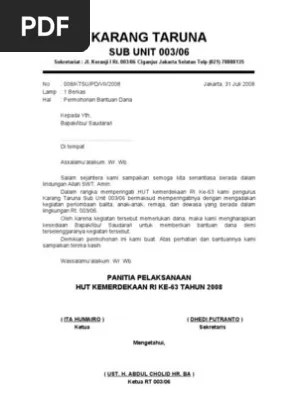 Proposal kegiatan hut ri a. (pdf) contoh proposal 17 agustus. Sengaja kami menyediakan 2 jenis file yang berbeda, karena pada . Contoh proposal kegiatan hut ri 1. Contoh proposal kegiatan 17 agustus untuk tingkat rt yang singkat, padat, jelas dan lengkap dengan susunan panitia, jenis kegiatan, . Contoh proposal 17 agustus dapat di download pada artikel ini secara gratis dan dapat disesuaikan dengan kegiatan dan kebutuhan yang ada. Download contoh proposal 17 agustus 2020 berdasarkan jenis format. Proposal hut kemerdekaan republik indonesia. Rencana anggaran biaya terlampir di download. Berikut ini beberapa contoh format proposal untuk acara 17 agustus di sekolah, masyarakat baik tingkat rt, rw, maupun untuk karang taruna . Misalnya di bulan agustus ini, ada kegiatan yang secara rutin dilaksanakan tiap tahun, yakni kegiatan perayaan hut ri 17 agustus. Berikut ini contoh proposal kegiatan 17 agustus. Contoh proposal hut ri ke 72.
