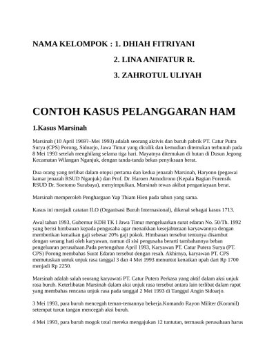 Contoh Contoh Makalah Kasus Marsinah : Doc Kasus Marsinah Steven Lim Academia Edu - Contoh contoh kasus pelanggaran ham yaitu :